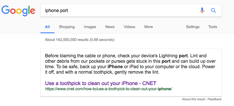 On the face of things, pocket lint seems like a minor problem, but when the first thing that comes up when you google “iPhone port” is a CNET article describing how to clean pocket lint out of your iPhone port, it might be time to reconsider fixing. Clearly, it something that a lot of users are having to deal with. I only wish that in retrospect, I had googled it instead of thinking I had a damaged product. It definitely would have save me some time.